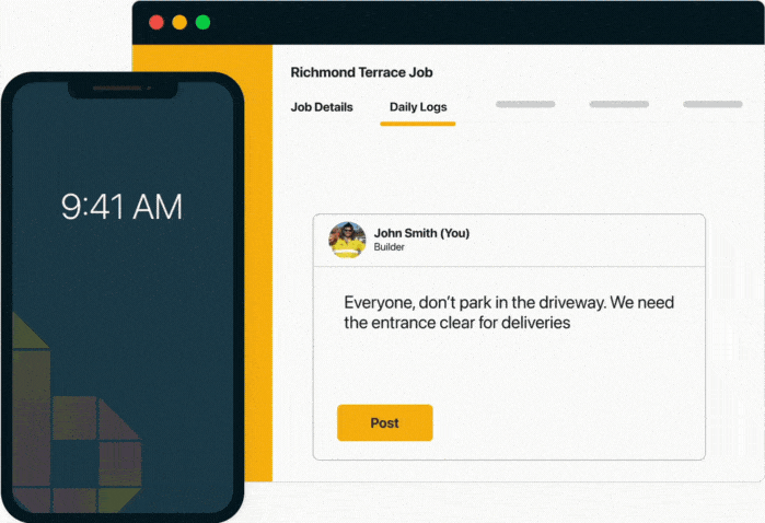 Sync with Buildxact Site Diary to share job progress. Everything from variations to schedule changes can be shared from Onsite to your Buildxact job management workflow.