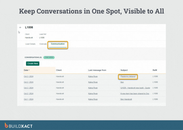 Buildxact’s construction CRM software automatically logs every question, response, and approval, including timestamps, creating an audit trail that you can reference during inspections, disputes, or warranty claims.